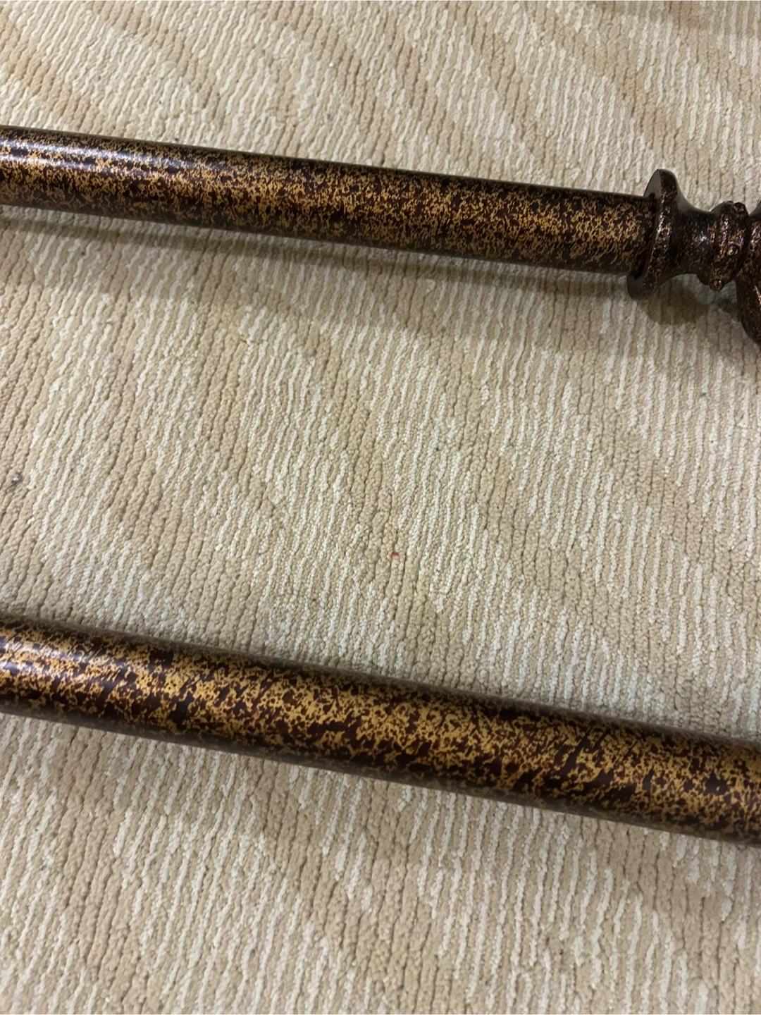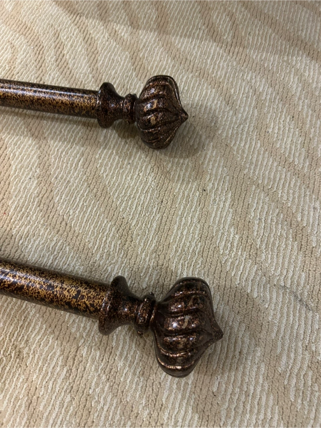 Selling a set of curtain rods in a bronze colour. Includes the rods themselves, mounting brackets, and screws. They're in great shape and ready to hang!