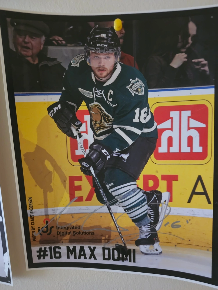 Selling a signed poster of hockey player Max Domi, number 16! The poster also features the logos for CCM and the London Knights. A great piece for any hockey fan!