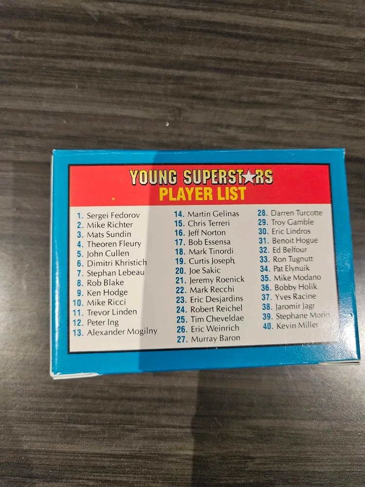 Selling two boxes of Score Young Superstars NHL player cards. One box is from 1990 and the other is from 1991. Each box contains 40 NHL player cards. Great for any hockey card collector!