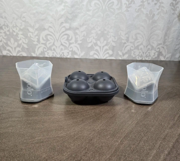 Good condition. Includes molds for both ice balls and diamond-shaped ice cubes. Add a touch of elegance to your cocktails or beverages.