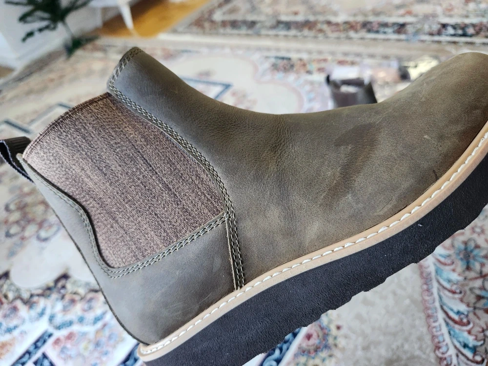 Selling a pair of Kodiak Comfort Wedge Chelsea boots in women's size 7. They are in good condition and have a stylish, versatile look. The boots feature a waterproof design, perfect for Canadian weather! They are made in China.