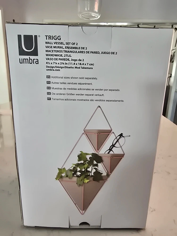 Selling a set of 2 Umbra Trigg wall vessels! These are great for adding a modern touch to any room. The box is included. They each measure 4½ x 7¼ x 2¾ inches (11.4 x 18.4 x 7 cm)