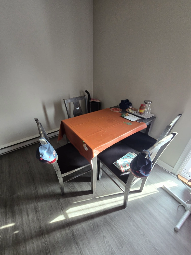 Buy & SellDining table with 4 chairsDining table with 4 chairs$200Selling a dining table with four chairs. It's in good condition and ready for a new home!WHERE TO MEET35 John Street, Kingston.View MapSELLERDCInner Harbour00 reviews0 chats·0 favorites·1 views