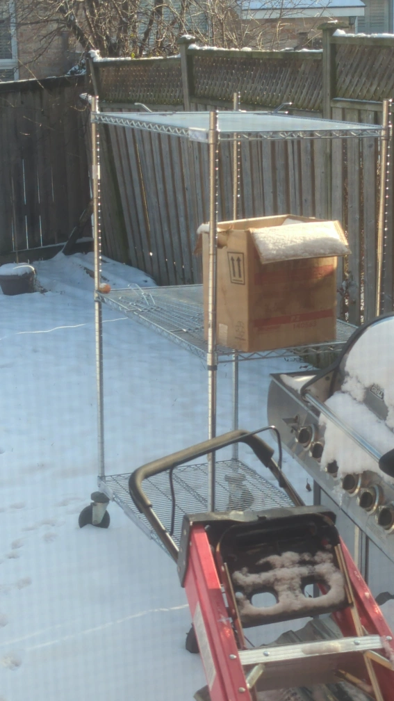 Selling a metal shelving unit with wheels. It's in good condition and ready for use in your home, garage, or storage area. Perfect for organizing various items!