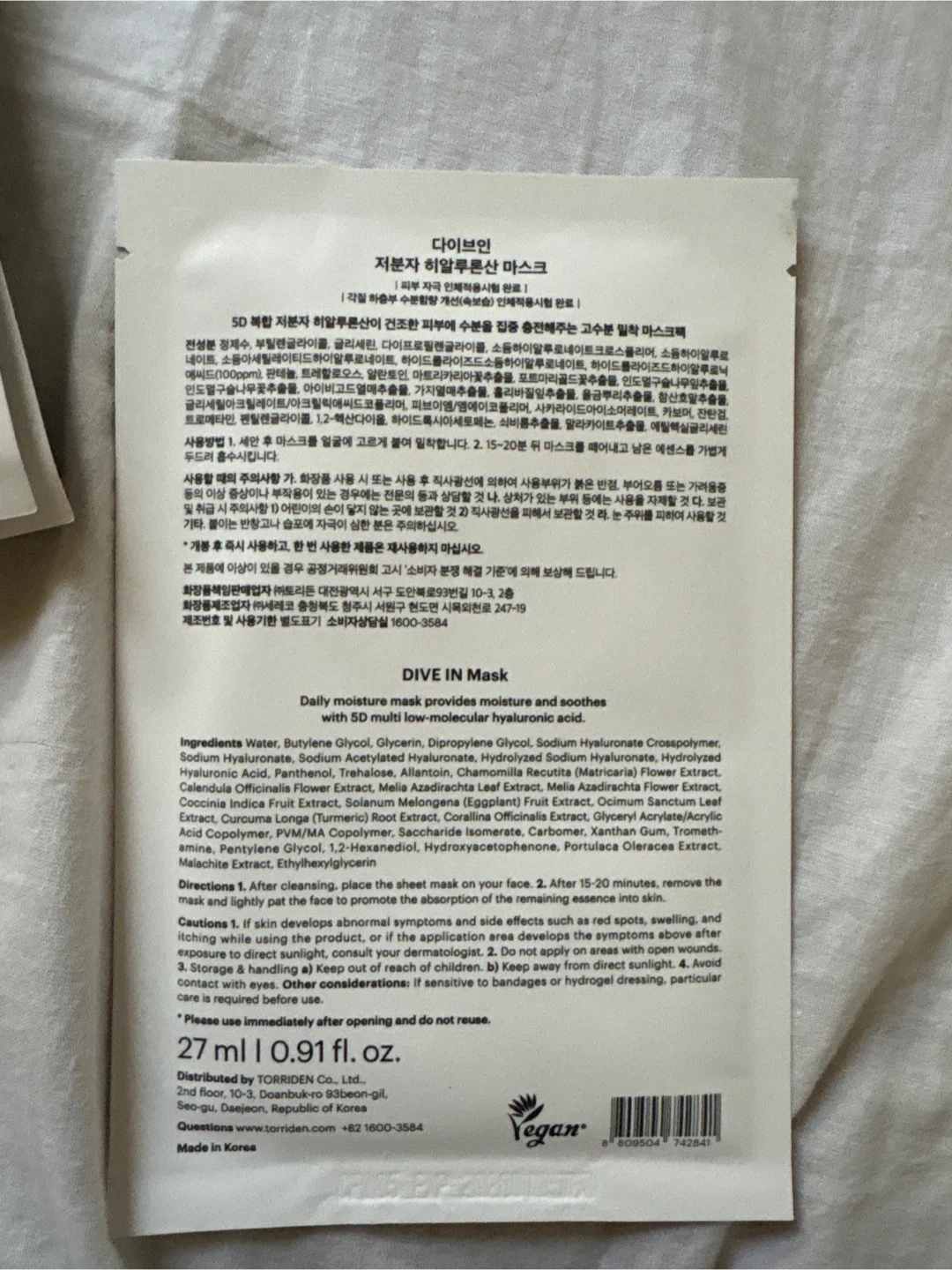 Torriden Dive In Mask Sheet