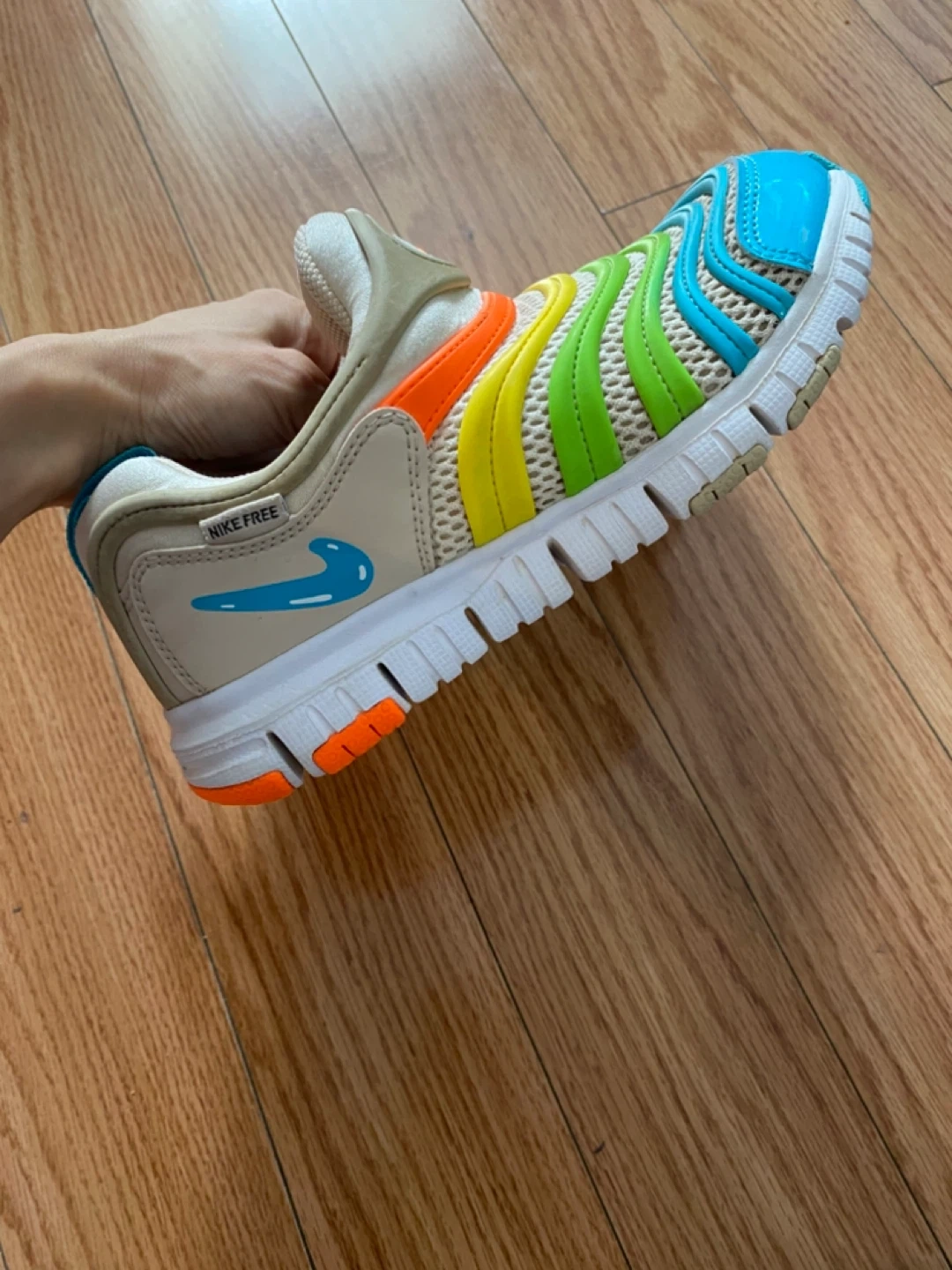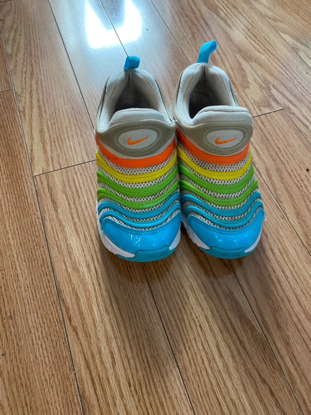 These Nike Free Dynamo toddler shoes are in great condition and ready for a new little one! They feature a colourful design and are a US size 3Y. Perfect for active kids!