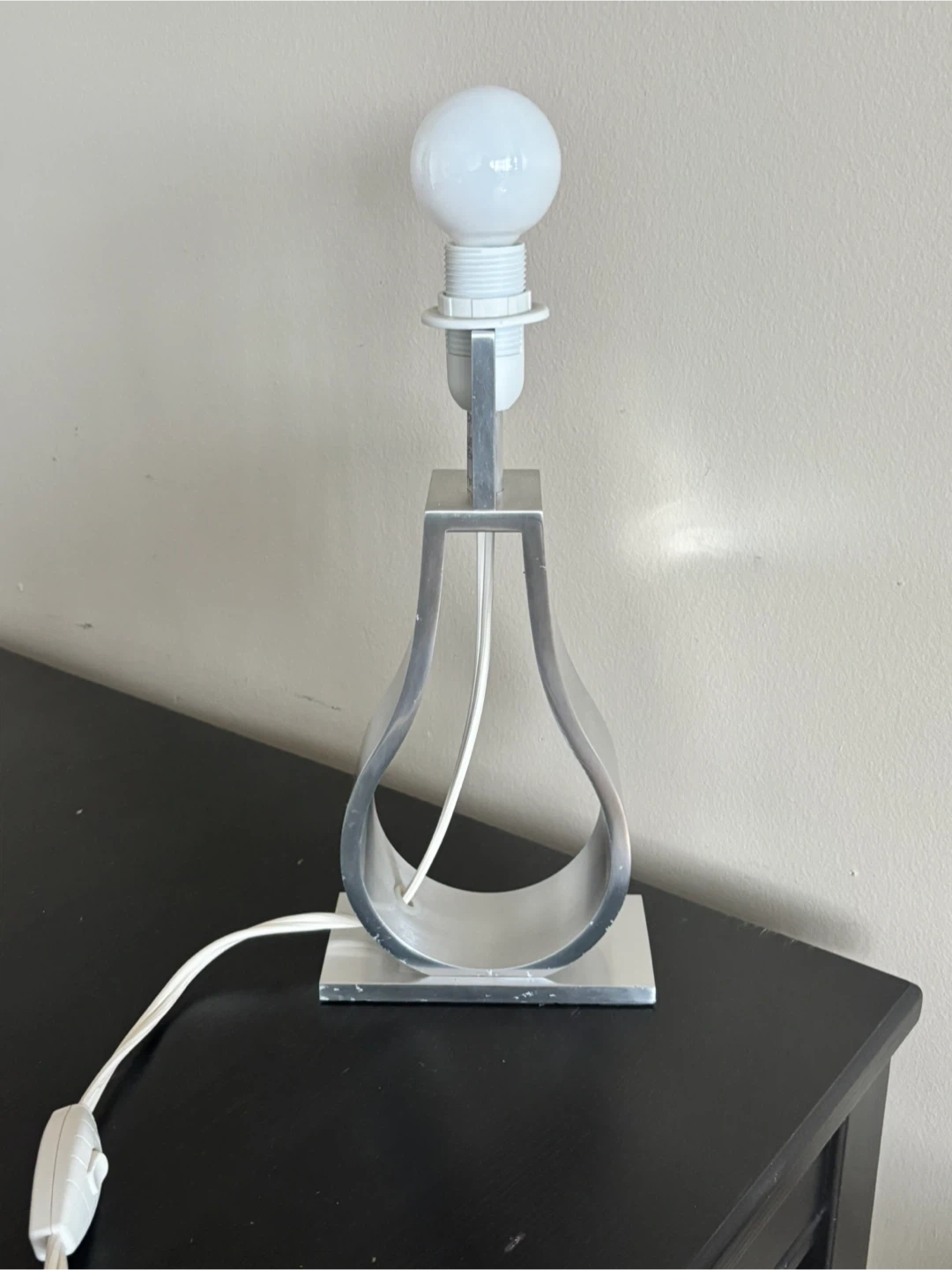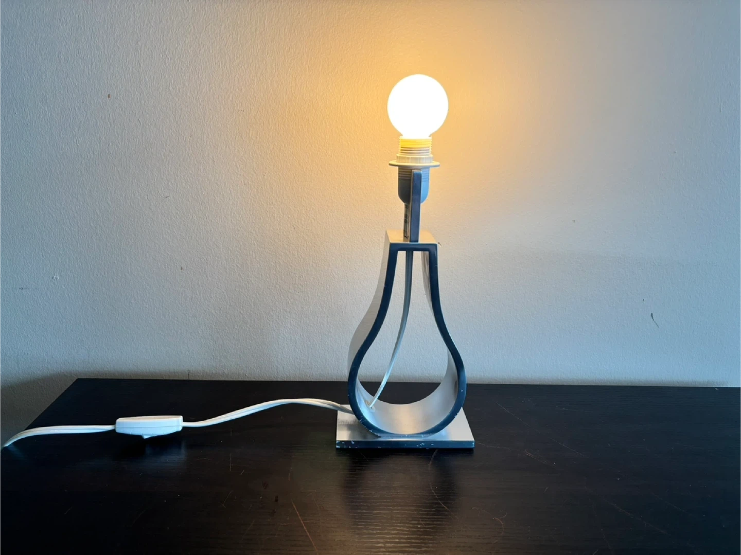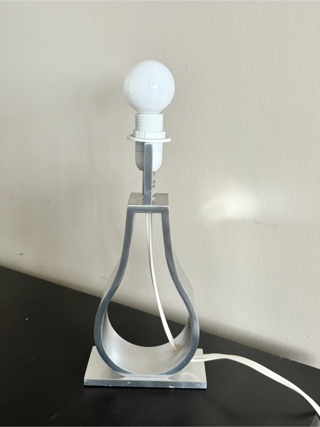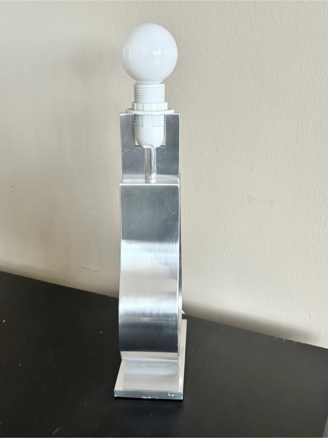 This is a modern-looking silver table lamp from Ikea (brand Klabb). Lightbulb comes with it. Small markings (visible in photos).