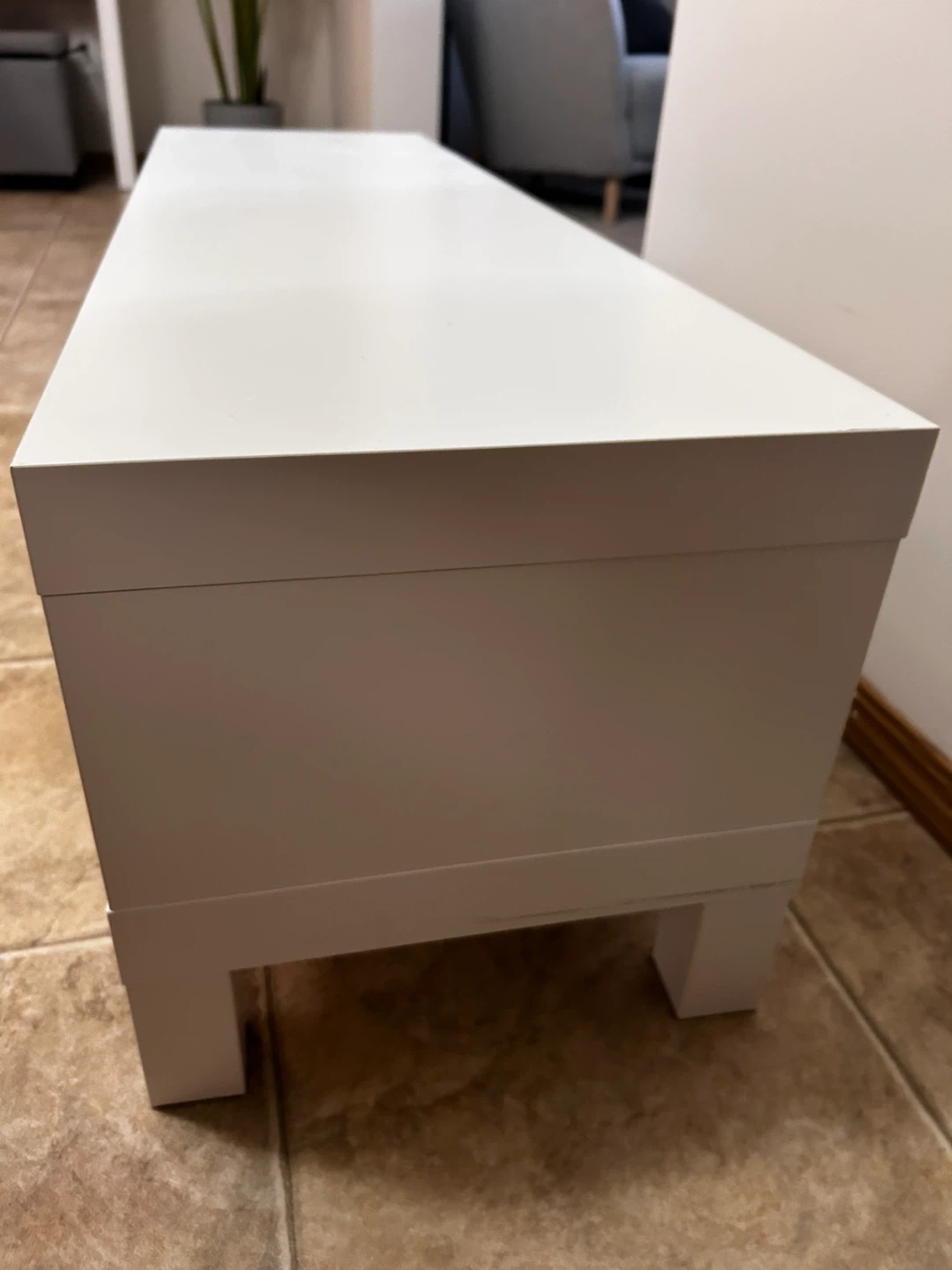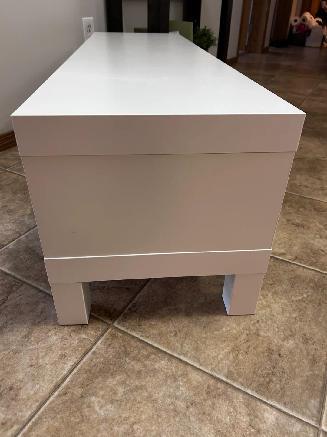 Selling a white IKEA Lack TV bench! It's in great shape and ready for a new home. It measures 120x35x36 cm, or 47 1/4x13 3/4x14 1/8 inches. Originally bought for $79.99!