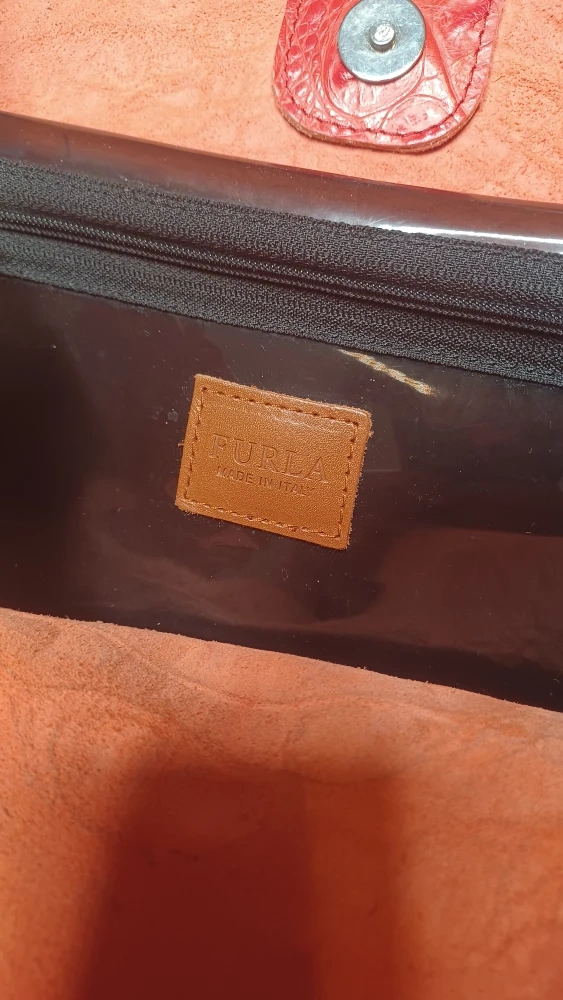 Check out this stylish Furla tote bag! It features a vibrant red colour and a unique crocodile-embossed leather design. Perfect for adding a pop of colour to your outfit.