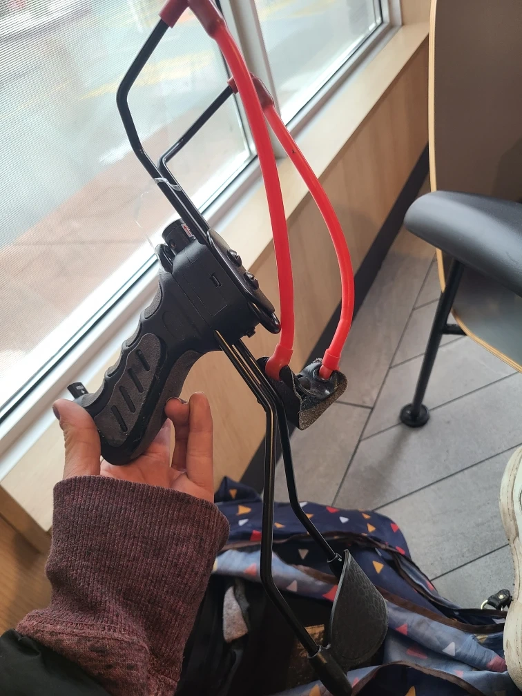 Buy & SellSlingshotSlingshot$40Selling a slingshot. It has a black frame, grey grip, and red rubber bands. Good for target practice or outdoor activitiesWHERE TO MEETCheck LocationView MapSELLERverifiedSarahMAIN at OTTAWA731 review0 chats·0 favorites·12 views
