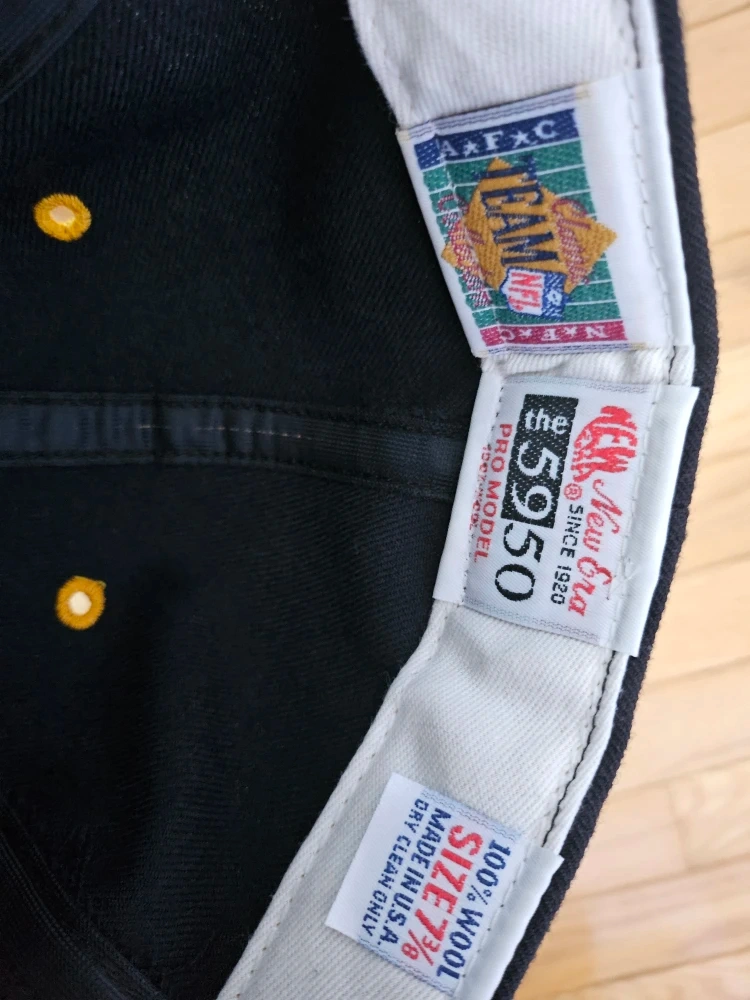 Selling a New Era Chargers 59Fifty Pro Model hat. It's black and gold and made of 100% wool. The size is 7 3/8.