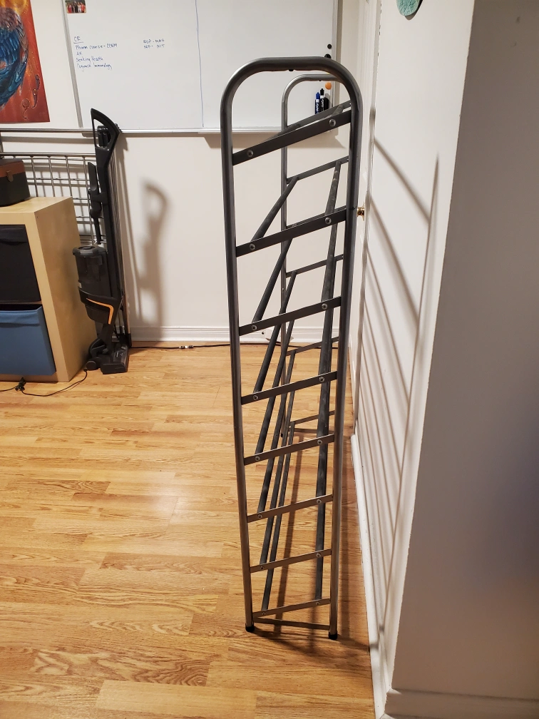 Here's a metal shoe rack that's perfect for keeping your entryway or closet organized! It's in great condition and ready to hold all your footwear.