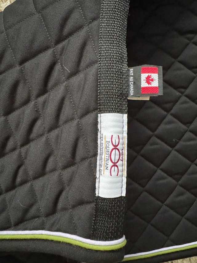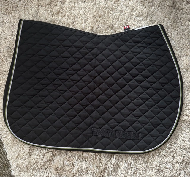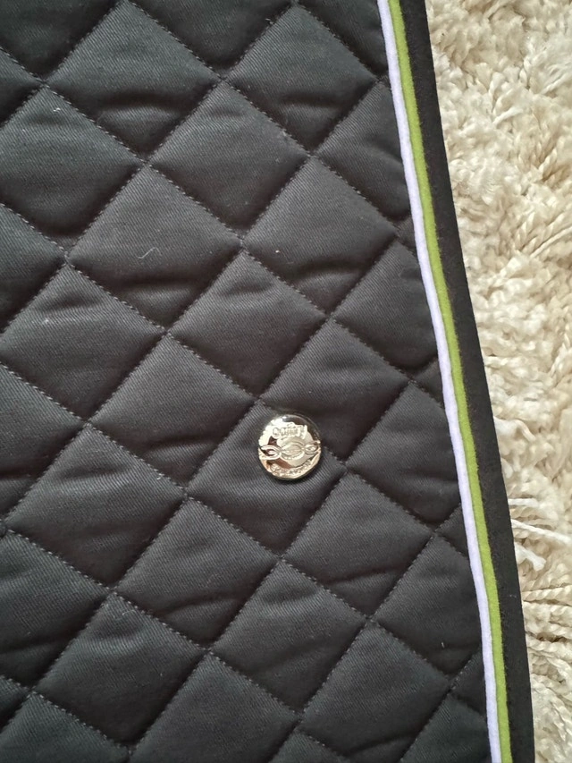 Selling a Black Ogilvy Jump saddle pad with black trim, and lavender & bamboo colour piping. Brand new condition. Also has girth loops. Asking $50. Please contact if interested
