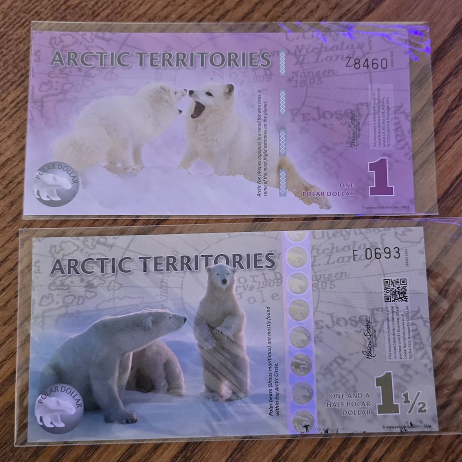 1 / 11 / 1Buy & SellArctic Territories Polar Dollar - FantasyArctic Territories Polar Dollar - Fantasy$10Selling two Arctic Territories Polar Dollars, one with a polar bear design and the other featuring arctic foxes. Set of 2 notesConditionNewWHERE TO MEET4 silver maple crtView MapSELLERverifiedJoshuaBramalea21715 reviews0 chats·0 favorites·24 viewsSEND CHAT TO SELLERHi Joshua! I’m interested in your listing.Hi Joshua! I’m interested in your listing.Get the Karrot app to chatSign In to chat