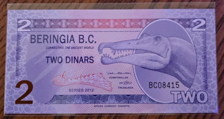 Buy & SellBeringia B.C. Two Dinars - FantasyBeringia B.C. Two Dinars - Fantasy$8Selling a Beringia B.C. Two Dinars. It's from Series 2012 and features a Spinosaurus Aegyptiacus. Printed in Canada!ConditionNewWHERE TO MEET4 silver maple crtView MapSELLERverifiedJoshuaBramalea18714 reviews0 chats·0 favorites·3 views
