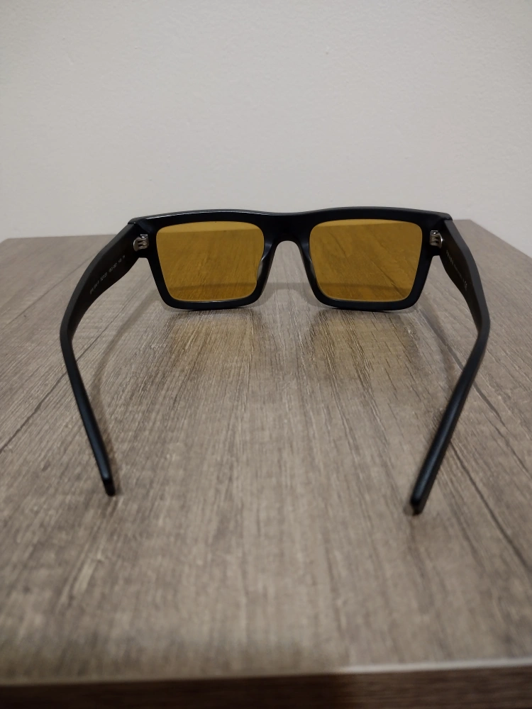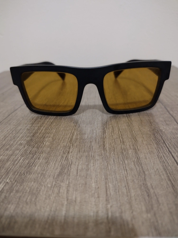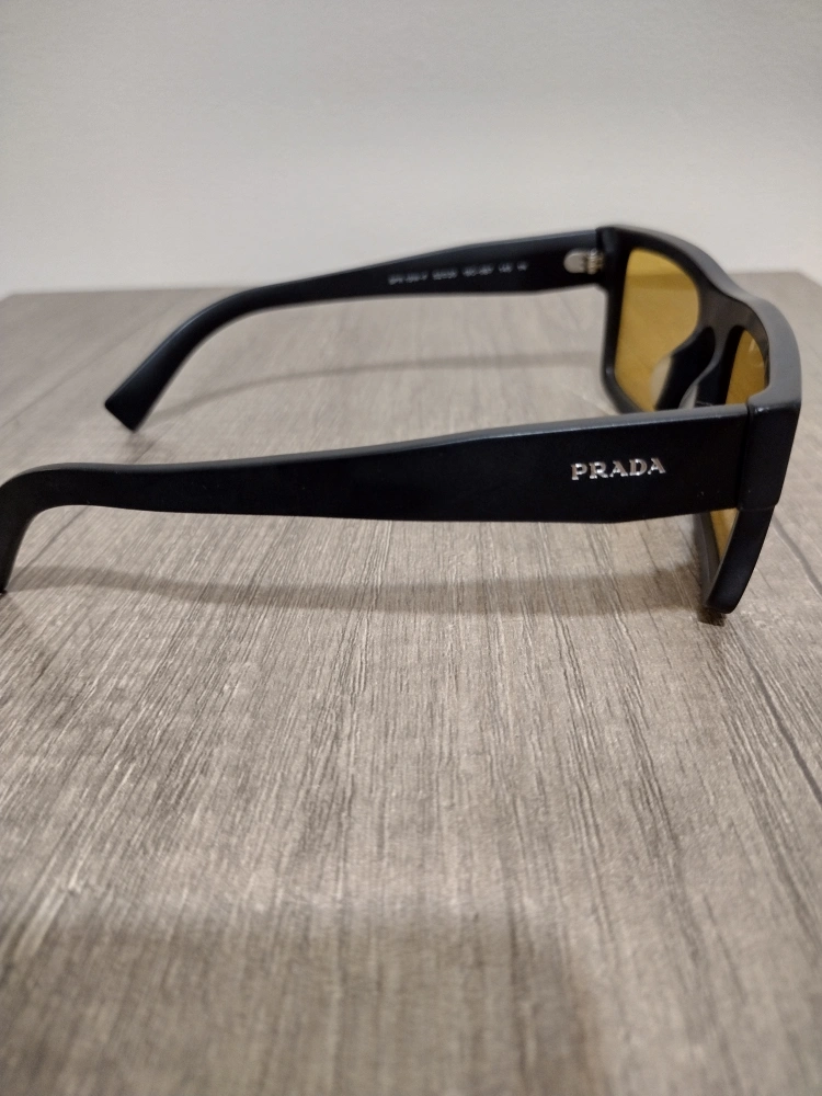 Selling a pair of Prada sunglasses with a sleek black frame and stylish yellow lenses. These sunglasses are in great condition and ready for a new owner!
