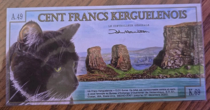 Buy & SellArchipel des Kerguelen 100 Francs Note - fantasyArchipel des Kerguelen 100 Francs Note - fantasy$9Selling an Archipel des Kerguelen 100 Francs note featuring Yves-Joseph de Kerguelen-Trémarec and Port-Aux-Français.ConditionNewWHERE TO MEET4 silver maple crtView MapSELLERverifiedJoshuaBramalea18714 reviews0 chats·0 favorites·1 views