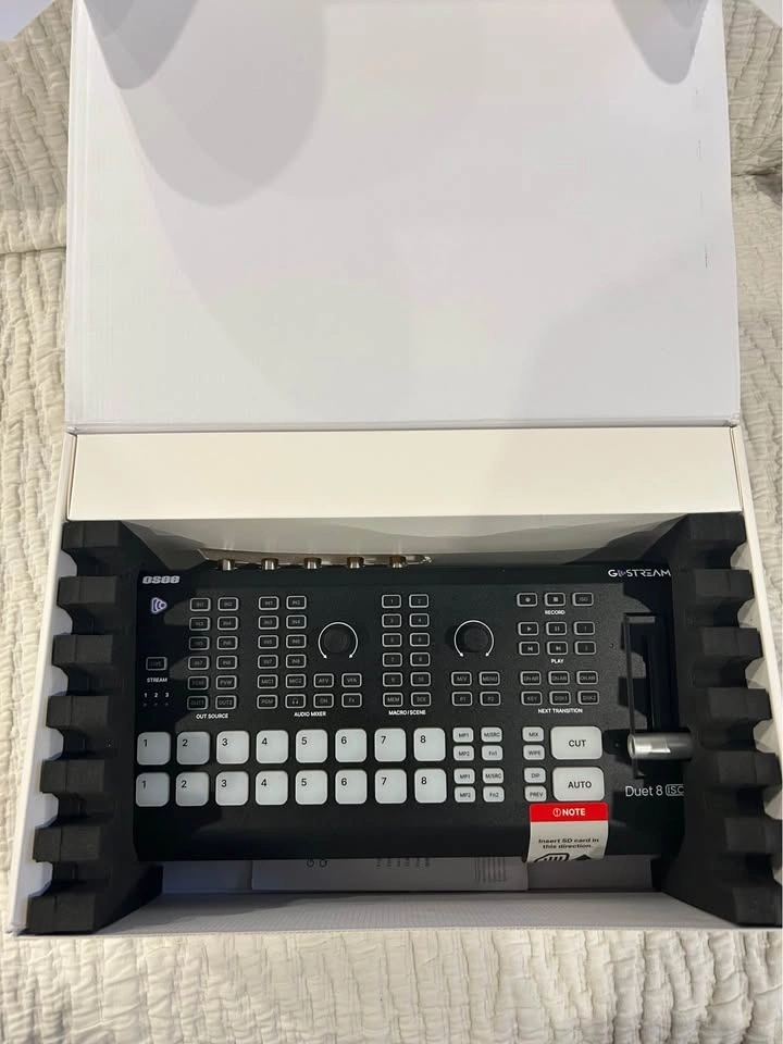 Brand New Osee GoStream Duet 8 ISO Video Mixer Switcher - 8 Channels. 8 Flexible Sources. 3 Outputs. 9 Video Layouts. XLR and 3.5 Audio. PGM AND ISO and ISO recording for your post production process. 3 streaming destinations support RTMP and SRT. Macro and Scene to fit all situations. Panel , Menu, Software and Companion API Control. 2 built - in players to playback videos. NDI, SRT, RTMP sources for your remote guests. Browser source to make professional animated overlay. 2 USB webcam inputs up to 1080 p60. 4 Windows Multisource with fully configurable. $800 Cash or Best Offer.