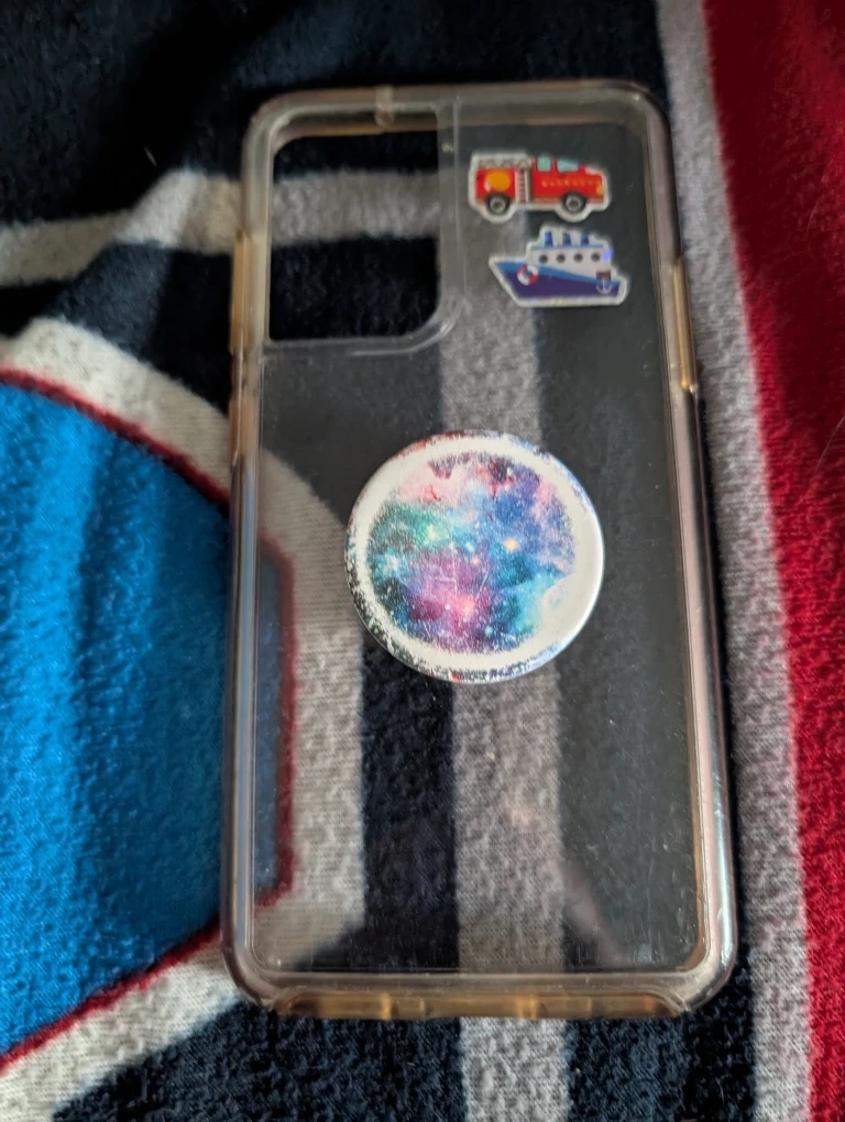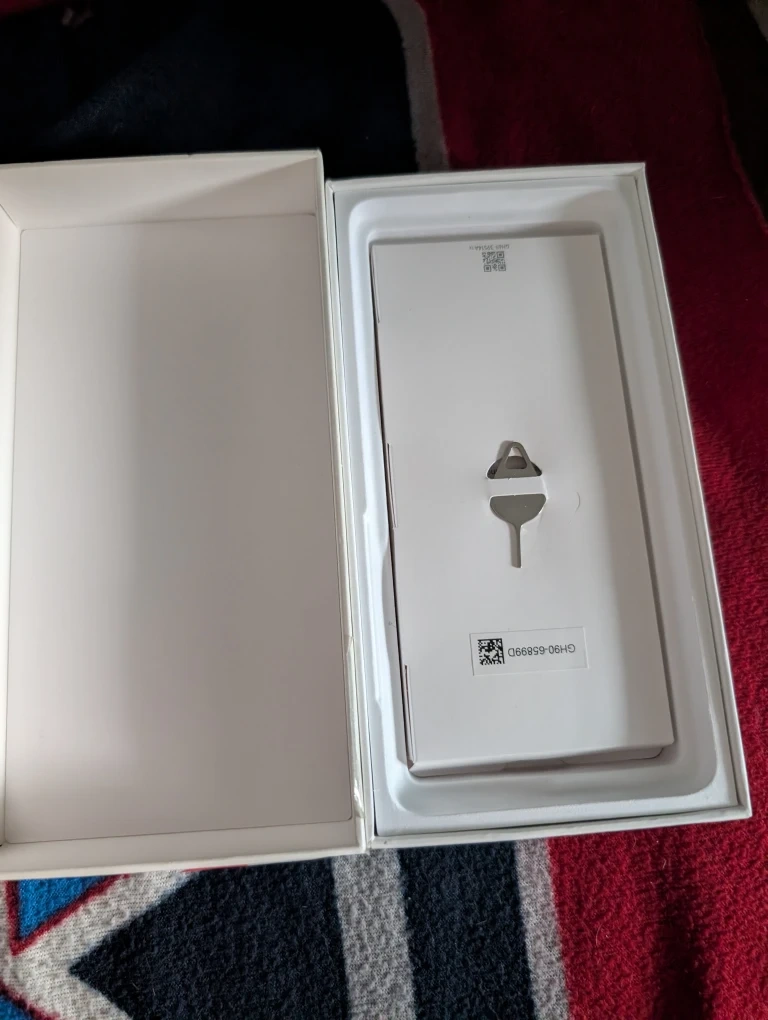Comes with box, tool for changing SIM, instructions, charging cable, case and popsocket(phone grip). The two little sticker can be peeled off and popsocket removed, if desired. Phones never come with the charging block anymore, but I can throw one in for you. I just reset it, as pictures show, so it is ready for you to enter you info and SIM card and start talking.