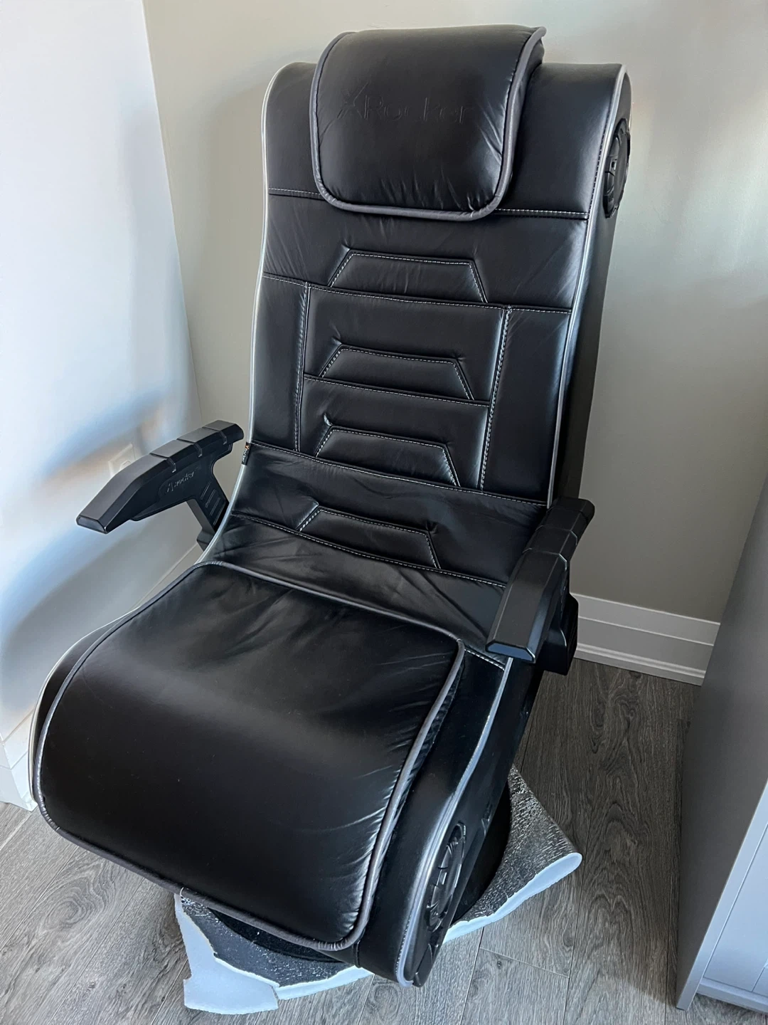 Selling an X Rocker gaming chair in black! It's in great shape and ready for a new gamer. This chair has built-in speakers for an immersive experience. Perfect for long gaming sessions!