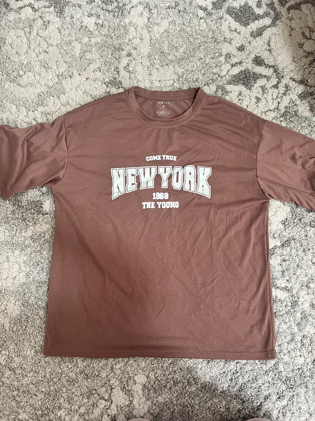 Buy & SellSHEIN Brown 'New York' Graphic Tee - Size MSHEIN Brown 'New York' Graphic Tee - Size M$5Selling a SHEIN brown t-shirt with a 'New York' graphic. It's a size medium and made of 100% polyester. Perfect for casual wear!ConditionLike newSizeMBrandSHEINWHERE TO MEETMavis No Frills PlazaView MapSELLERverifiedYenHurontario600 reviews0 chats·0 favorites·2 viewsSEND CHAT TO SELLERHi Yen! I’m interested in your listing.Hi Yen! I’m interested in your listing.Get the Karrot app to chatSign In to chat