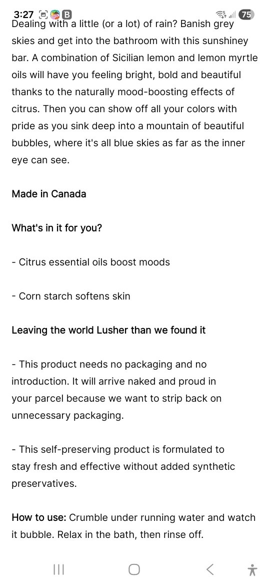 Brighten up your bath with this Lush Rainbow bubble bar! It's a combination of Sicilian lemon and lemon myrtle oils that will leave you feeling bright, bold, and beautiful.