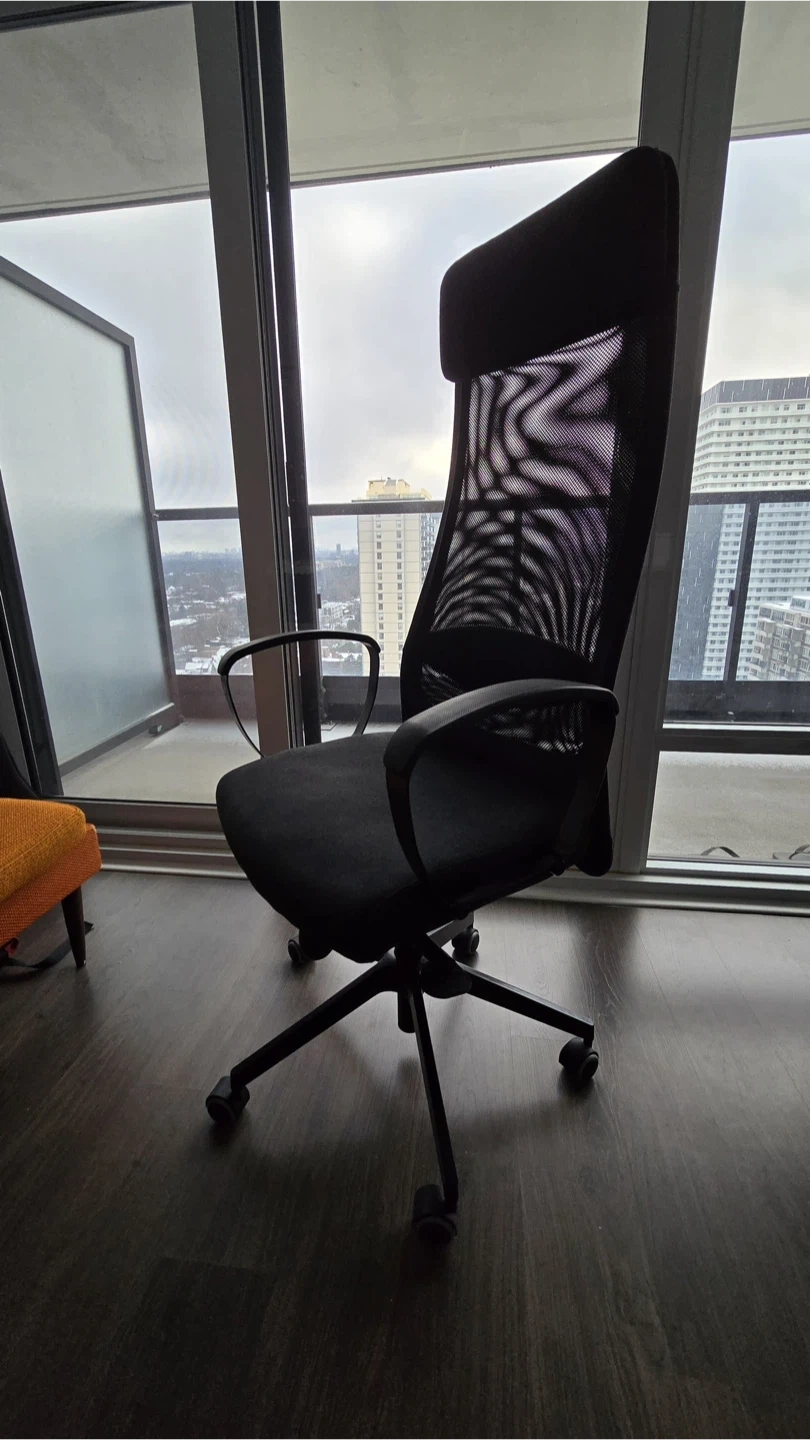 Selling an IKEA Markus office chair. It's in great shape and super comfy for long work sessions or gaming. The mesh back keeps you cool, and the adjustable height makes it perfect for any desk setup. Pickup at Eglinton area. Cash only.