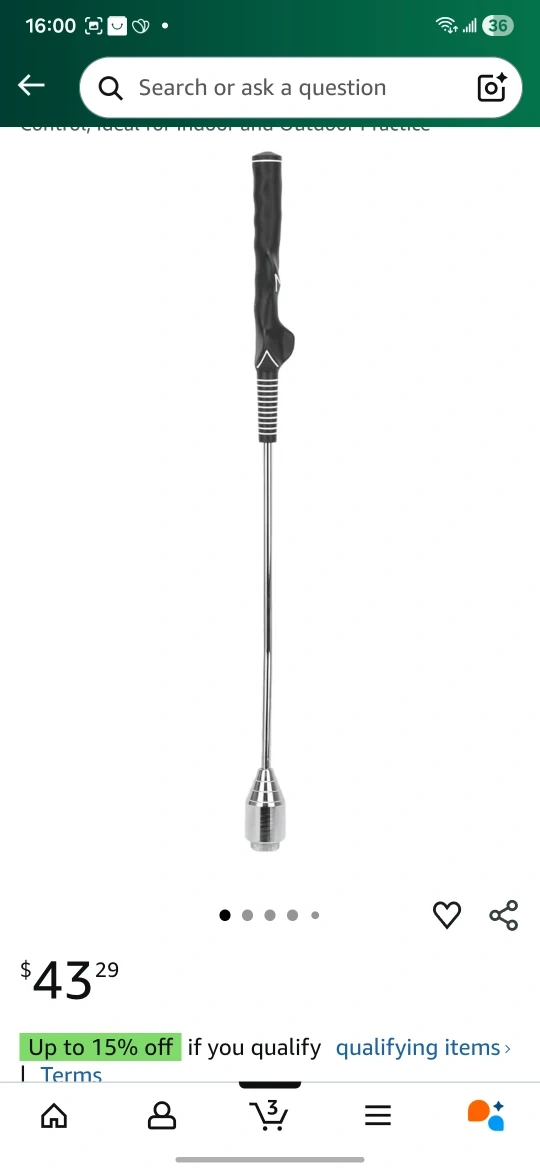 This is a QWUUYEC golf swing training stick. It has a steel plated rubber grip. It's designed for right-hand use and measures 25.98 inches. Ideal for indoor and outdoor practice, helping to improve your swing control