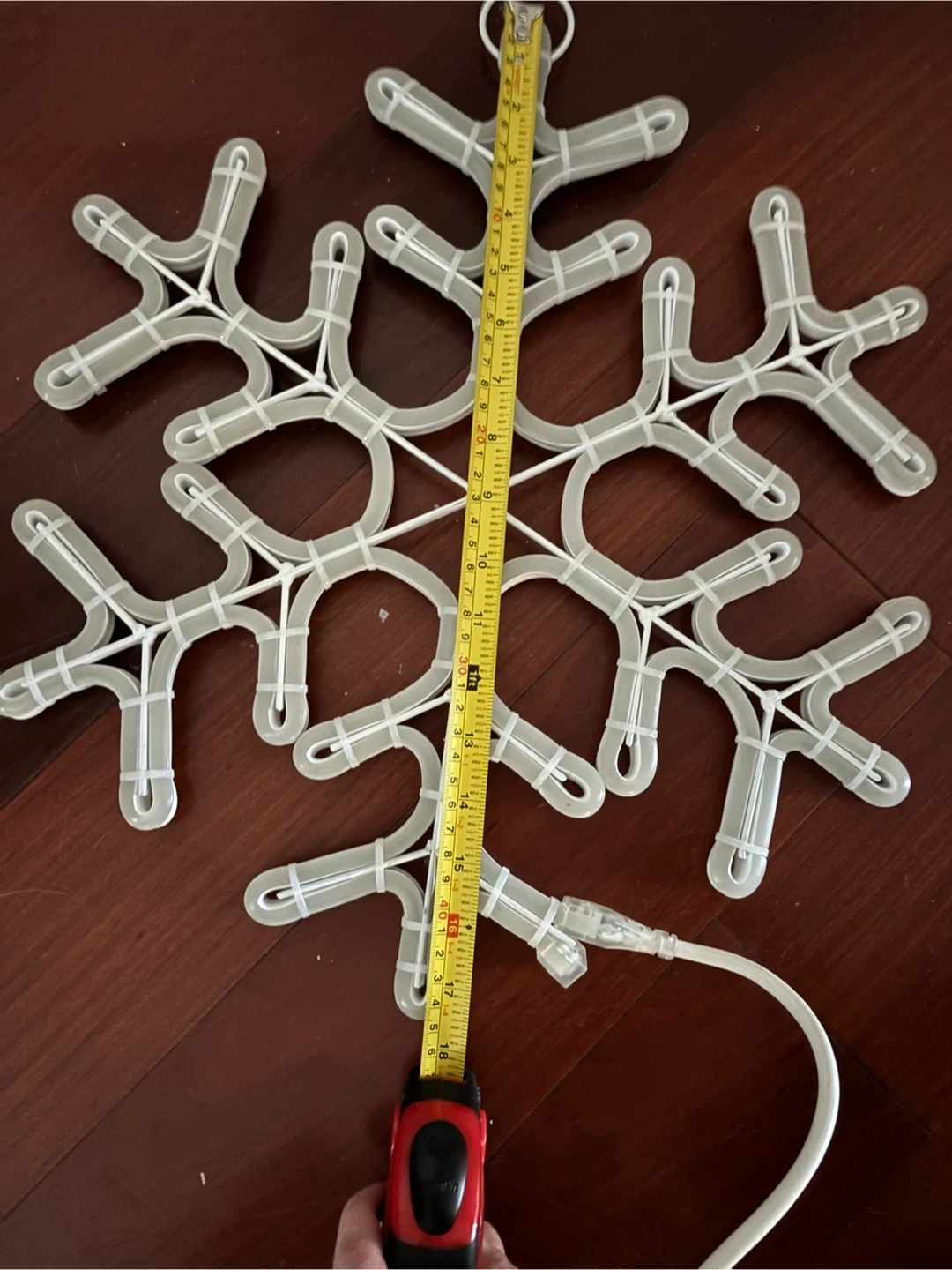 Here's a fun snowflake neon indoor/outdoor light! It measures approximately 17 inches in diameter. It's perfect for adding a festive touch to any room!