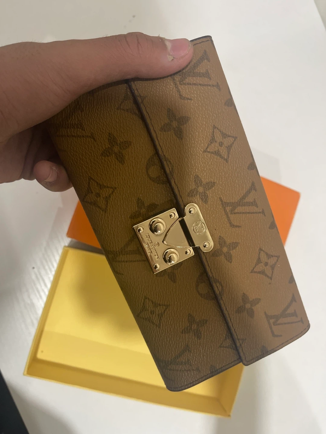 Selling a Louis Vuitton Lockme II wallet in good condition! It comes with the original box. The wallet features the iconic LV monogram pattern and a secure lock closure. A stylish and functional accessory!