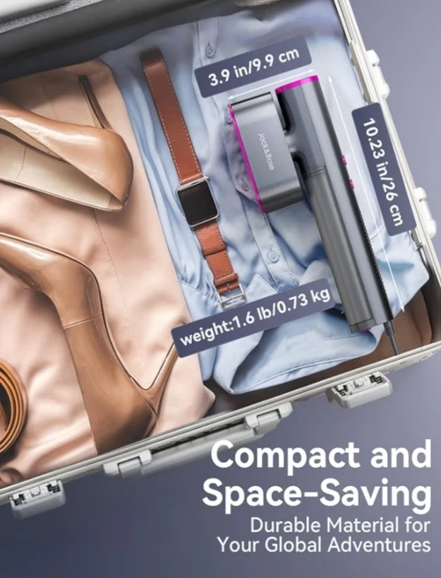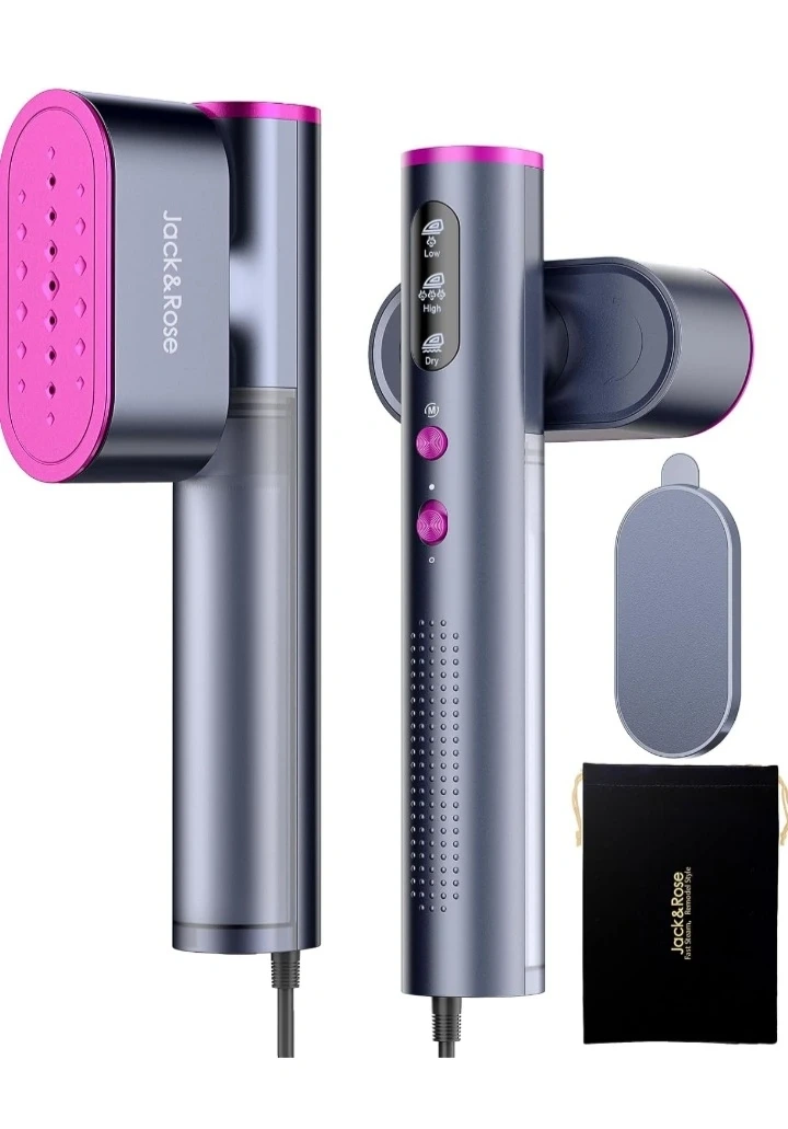 Jack & Rose Travel Steamer for Clothes,100-220V Portable Steamer,15s Heat Up,Steamer & Iron 2 In 1, Travel Size Garment Steamer,Large Ceramic Heat Panel,for Global & Europe Traveling.
