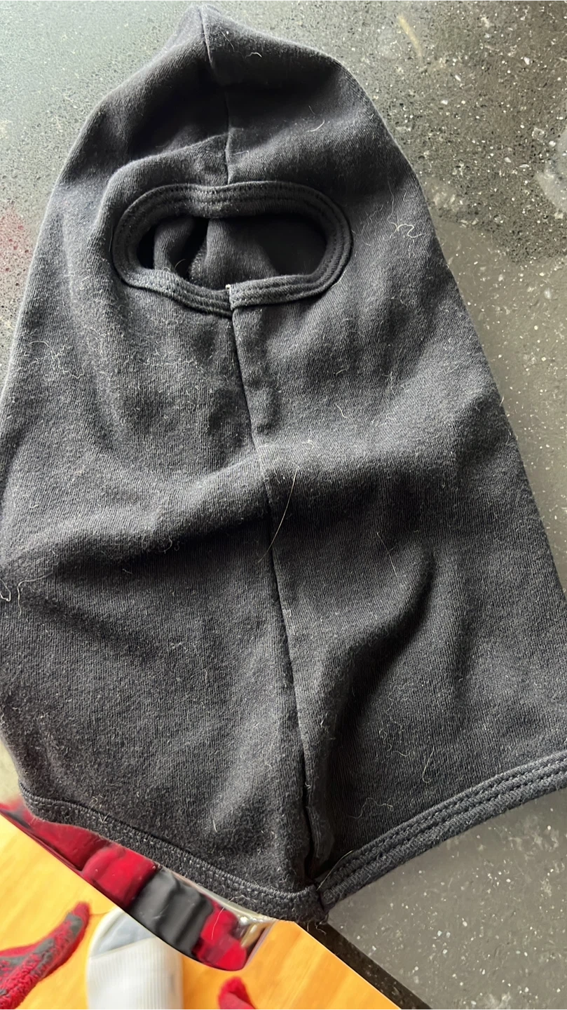 Here's a black balaclava, perfect for keeping warm during those cold Canadian winters! It's in good condition and ready to go