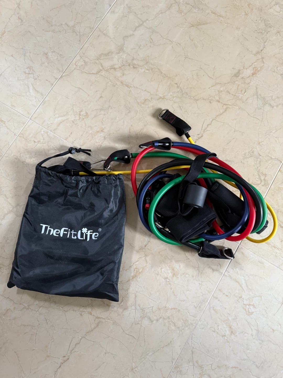Selling a set of resistance bands from TheFitLife! This set comes with multiple bands of varying resistance levels, perfect for a full-body workout at home or on the go. The bands are in great condition and come with a convenient carrying bag for easy storage and portability