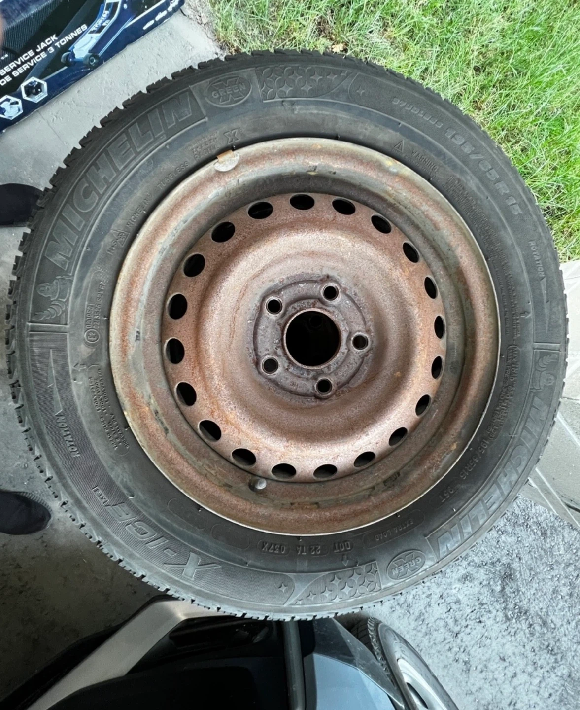 Selling a set of four Michelin winter tires, size 195/65R15. These tires are extra load rated and ready for the winter season. They have a radial tubeless design with a tread ply of 2 steel and 1 polyester, and a sidewall ply of 1 polyester. The DOT code indicates they were manufactured in the 22nd week of 2022.
