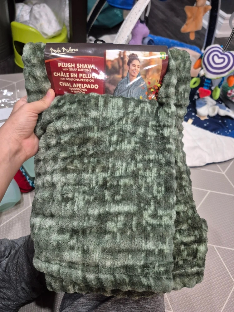 Snuggle up with this super soft Mala Madonna plush shawl! It's a comfy and stylish way to keep warm. The shawl features snap buttons for easy wear and is made of 100% polyester. The size is 26 x 66 inches (66 x 167.6 cm).