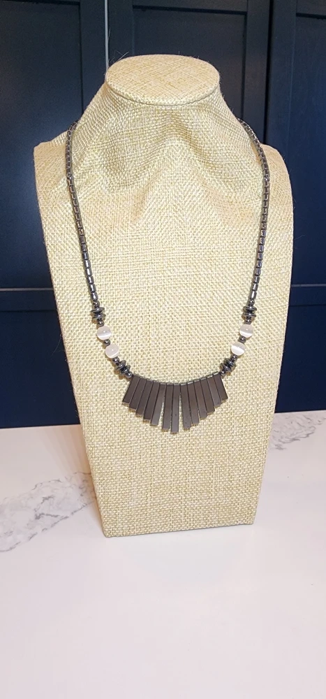 Vintage 1980’s Hematite Stone Fringe Necklace