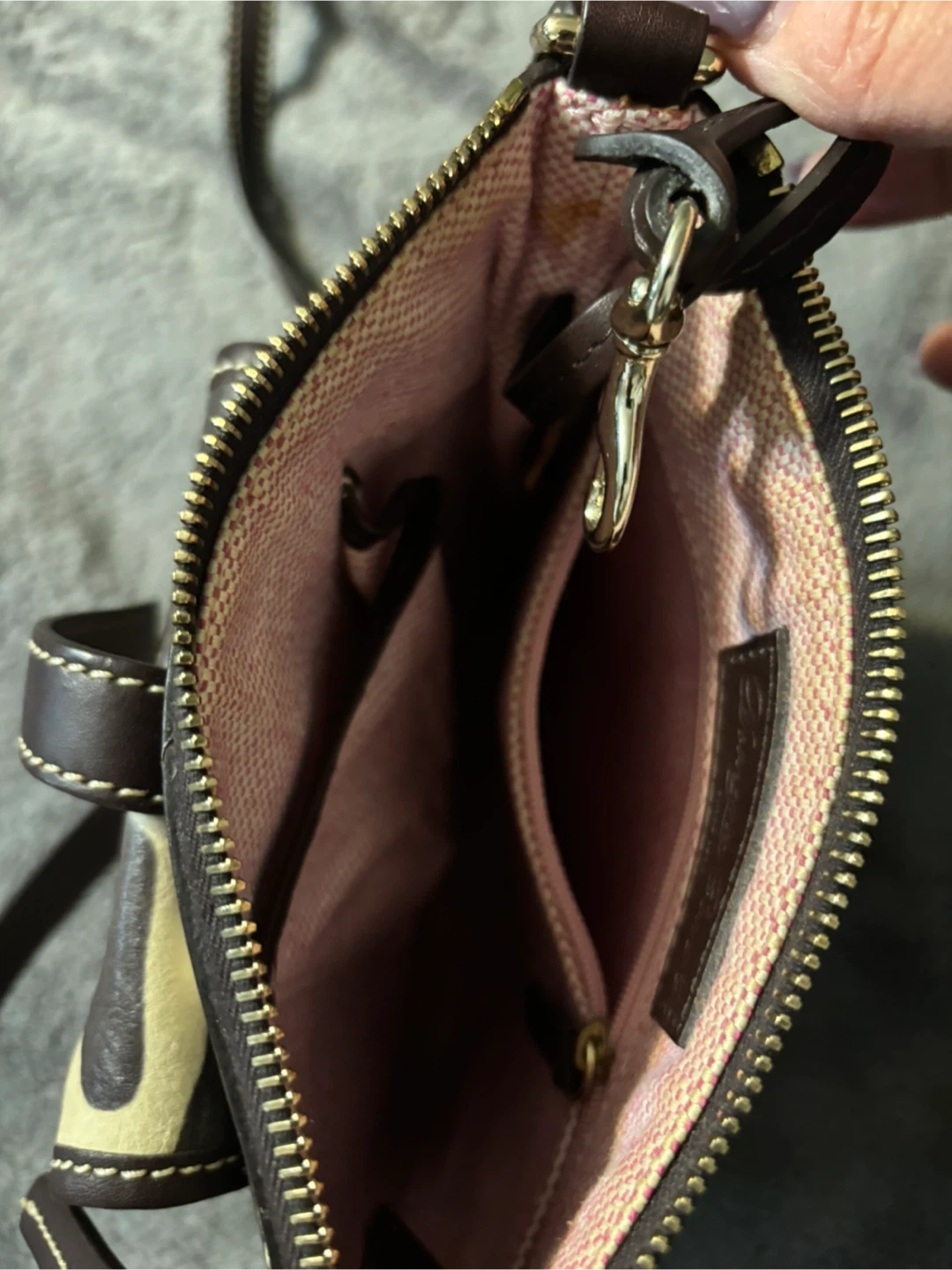 Check out this cute Dooney & Bourke crossbody bag! It features a unique giraffe print design. Perfect for adding a touch of fun to your outfit! Measurements in pics