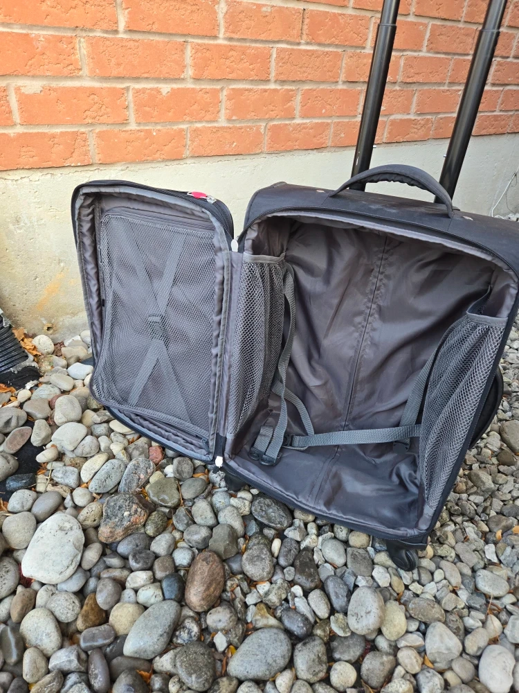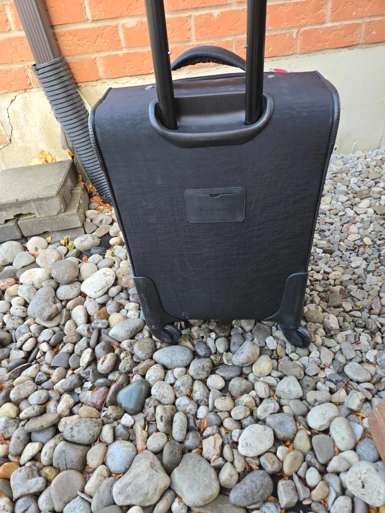 Selling a black carry-on suitcase with wheels. It's in great shape and ready for your next trip! It has a retractable handle and zippered compartments.