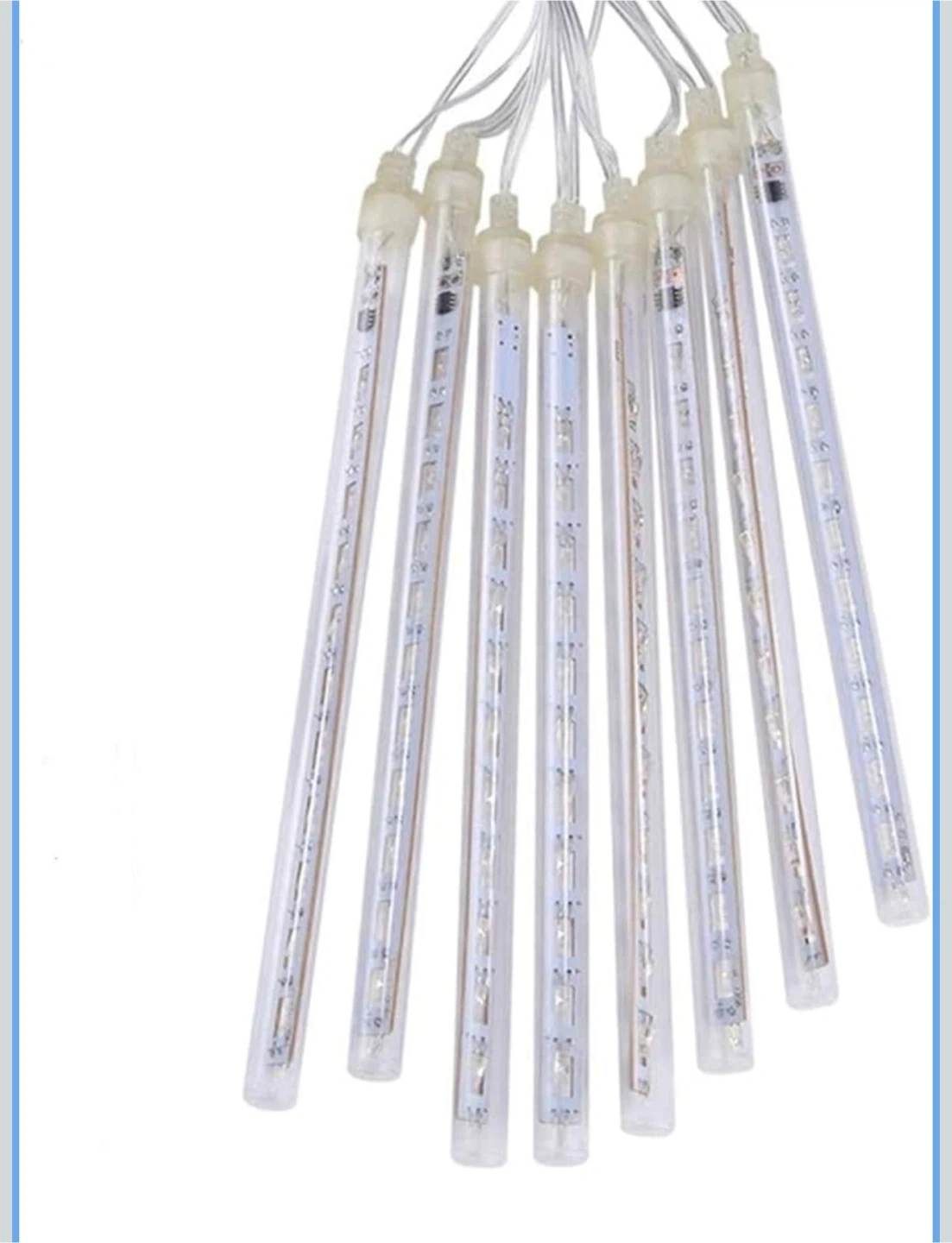 Get ready to add some sparkle to your indoor or outdoor space with this InStyle Holiday cascading icicle light set! These LED lights create a beautiful light show, imitating dripping icicles. The set includes 8 acrylic icicles with multi-colour energy-saving LED bulbs. Four of the icicles are 10" (25cm) and the other four are 14" (35cm) with 12" spacing between the icicles. You can even connect up to 2 sets together!