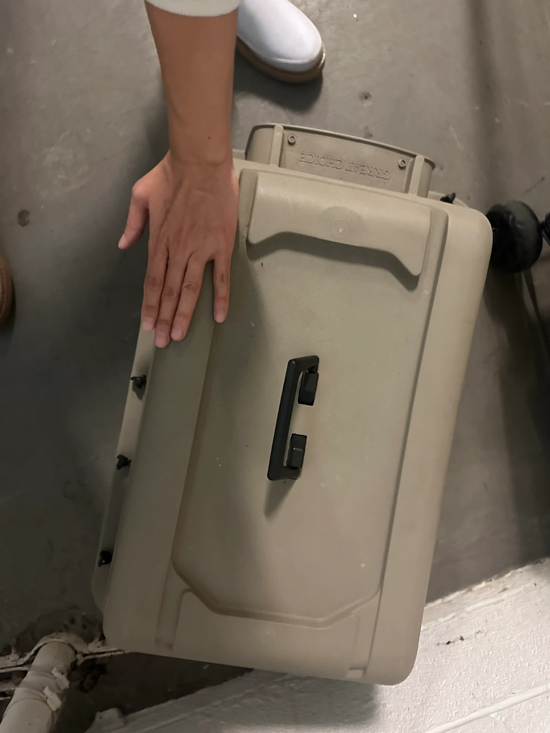 Selling a large size pet carrier! It's in great shape and ready for your furry friend. The carrier is beige and features a sturdy handle and secure door.
