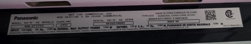 Selling a Panasonic microwave oven, model NN-ST775S.