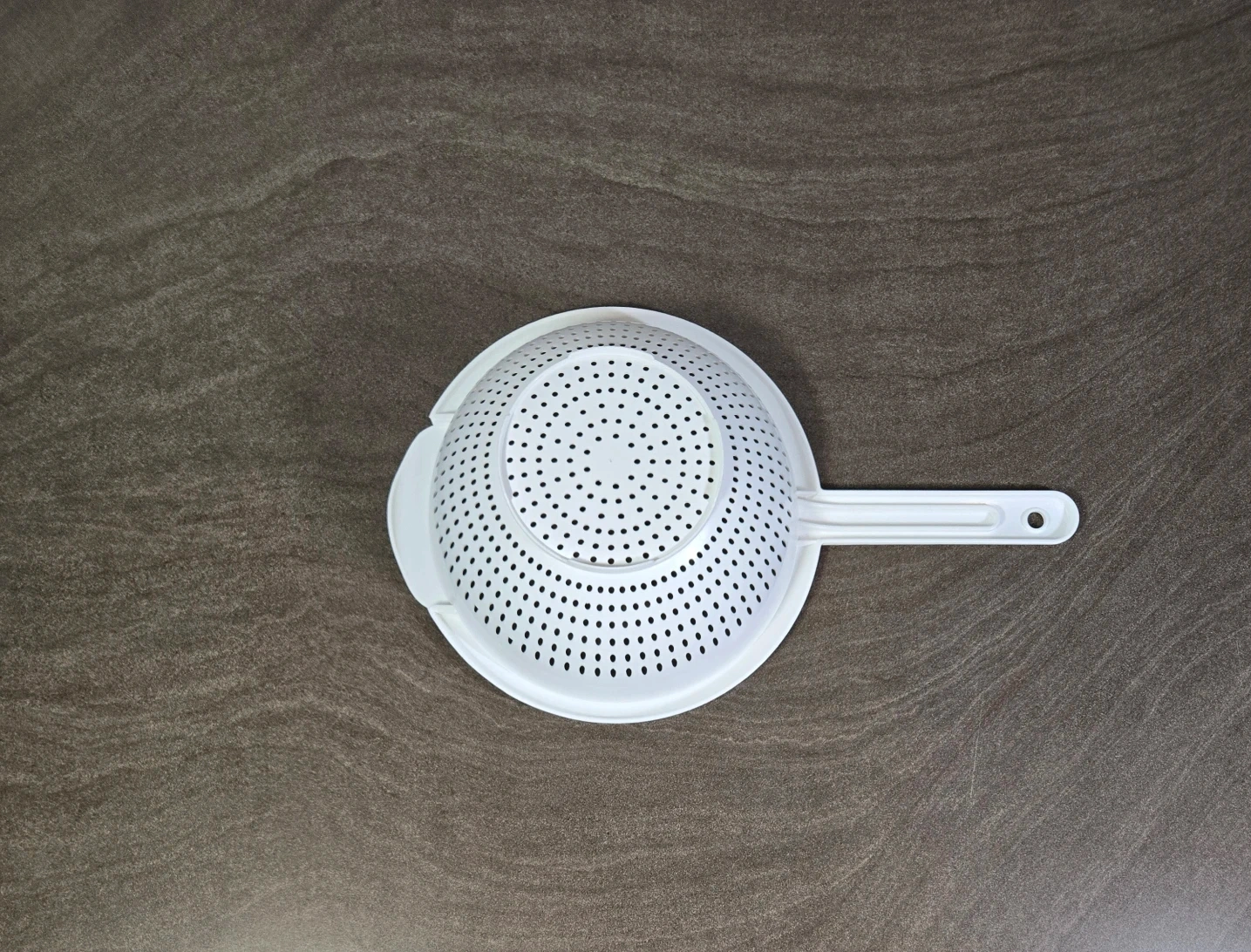 Great shape and ready to help with your cooking needs. Perfect for rinsing fruits, veggies, or draining pasta. It has a handle for easy use. 9.5". Cross-posted.
