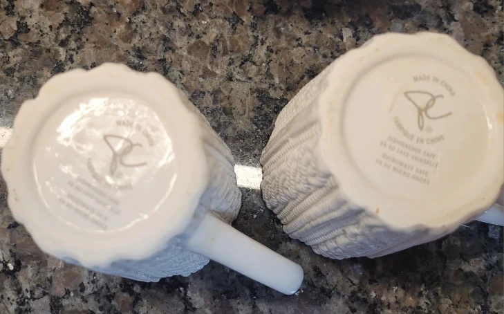 Lovely white porcelain teapot and mugs with a cable-knit sweater design. It's in great condition never used.