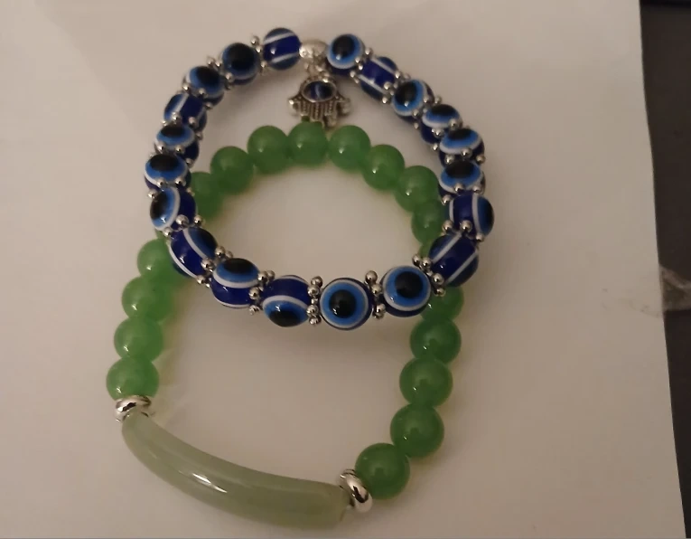 Green Beaded bracelet/Evil eye bracelet
