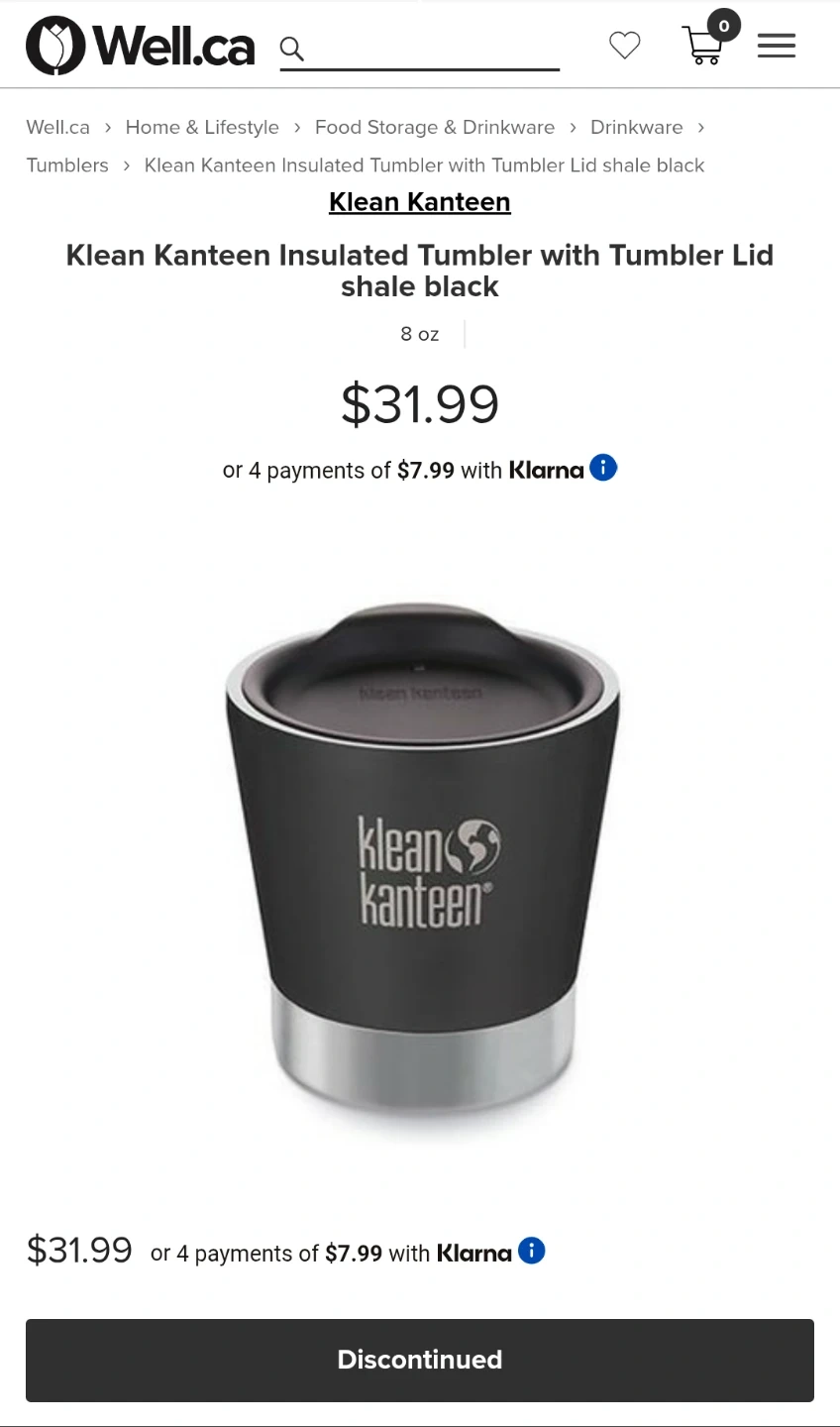 KLEAN KANTEEN Vacuum Insulated tumblers w lids 8oz Shale Black