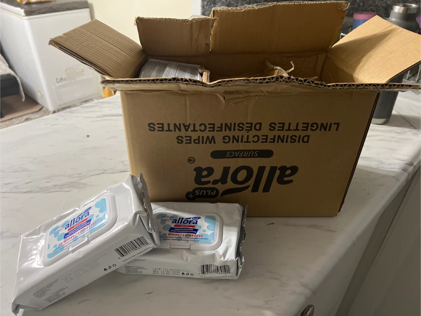 Selling packs of Allora Plus surface disinfecting wipes! Each pack contains 50 wipes, perfect for keeping your surfaces clean and germ-free. Expiry date is 2025 December 02