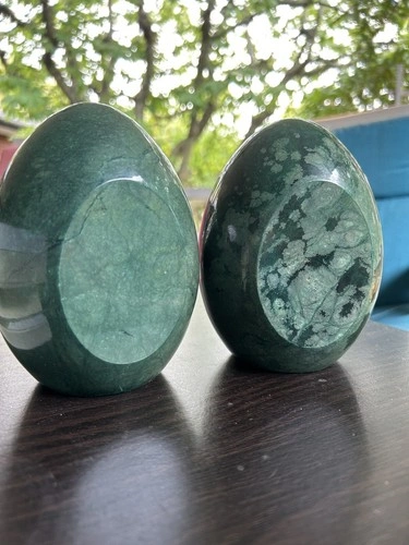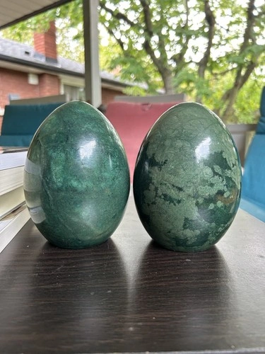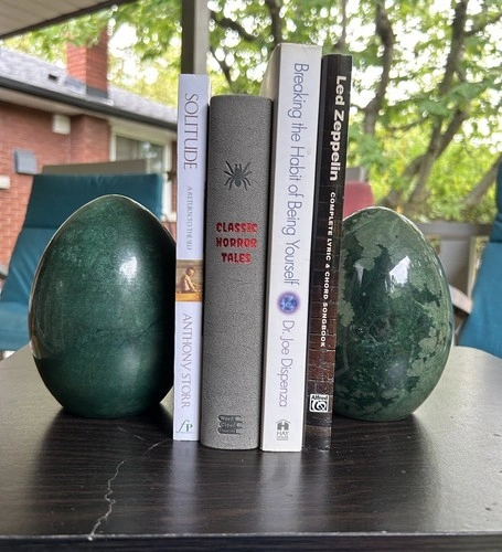 Hand Carved Vintage Green Genuine Alabaster Egg Bookends
