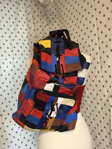 Vintage 80s Multicolour Leather Patchwork Backpack