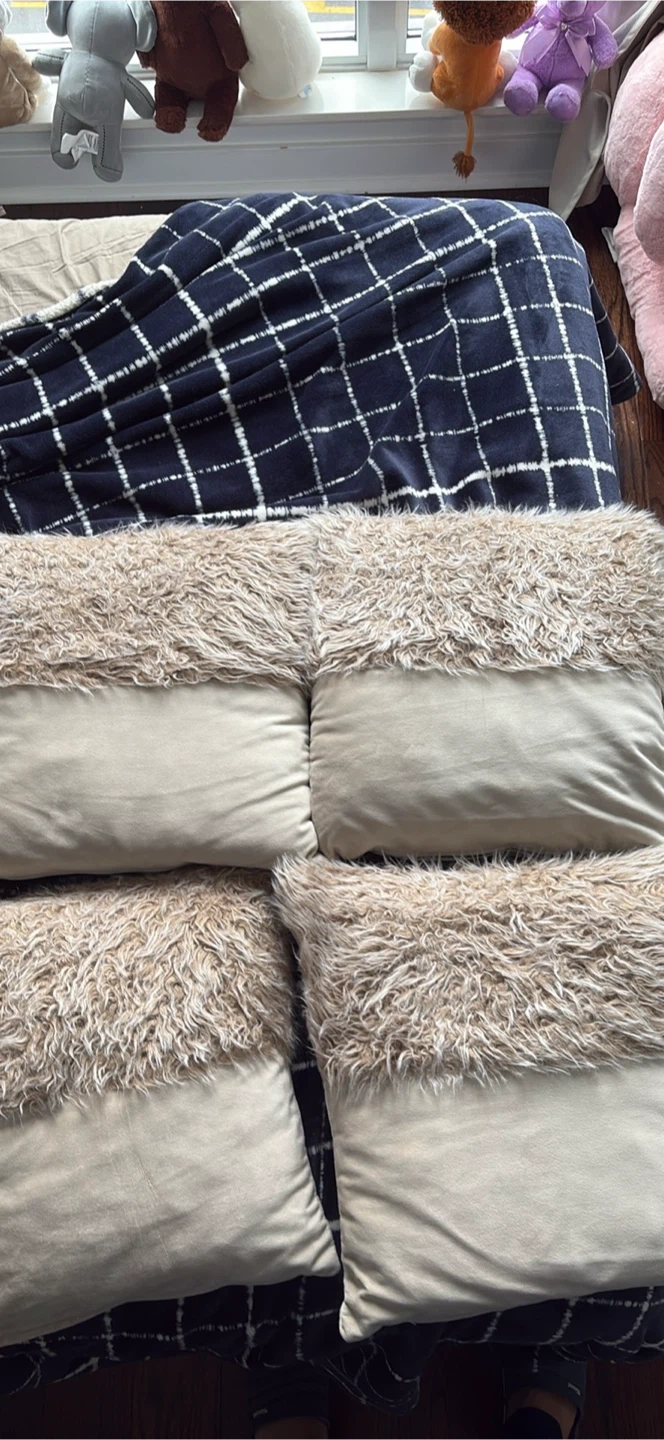 Selling a set of 8 beige throw pillows! They're in good condition and would look great on a couch or bed. Perfect for adding a cozy touch to your living space