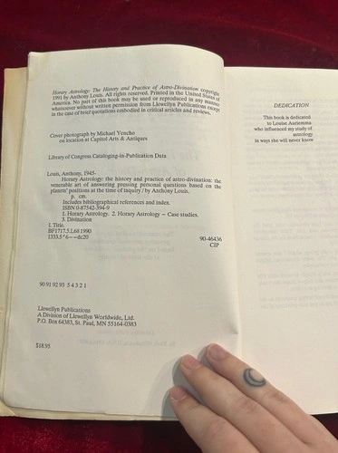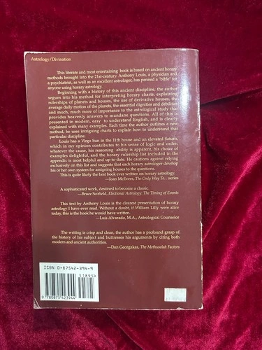 Explore the celestial realms with "Horary Astrology: The History and Practice of Astro-Divination" by Anthony Louis. A vintage treasure published in 1991 by Llewellyn Publications, this paperback offers a deep dive into the timeless practice of astrology, weaving together the threads of divination, spirituality, and history. Delve into topics such as the zodiac and its influences, making this book an essential addition to any astrology enthusiast's collection. Whether you're a novice or seasoned practitioner, Anthony's work provides invaluable insights into the art and science of astrological divination.